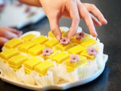 Hausgemachte Pasta mit Pesto, Getrockene Tomate, Oliven, Rote Zwiebel, Parmesan mit Forelle