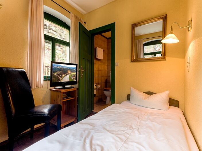 Das Haus direkt am Malerweg im Stile der 30er Jahre ist schlicht und rustikal eingerichtet. Mit viel Holz und warmen Farbtönen versprüht die Pension den Charme einer gemütlichen Herberge zum Wandern und Klettern im Elbsandsteingebirge. Eine Stube mit Kaminofen verbreitet zudem behagliche Baudenstimmung. Auf den Wanderer und Radfahrer warten 10 Zimmer auf drei Etagen. Vom Einbett- über Doppelzimmer bis zum Dreibettzimmer ist es für Einzel- und Gruppenreisende ein begehrtes Quartier in Schmilka, dem besonderen Ortsteil von Bad Schandau.