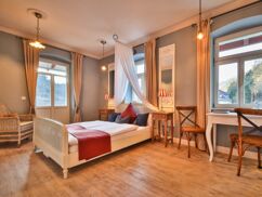 Dieses lichtdurchflutete, sonnige Zimmer ist ein wahres Schmuckstück. Der Balkon lädt dazu ein, die Seele baumeln zu lassen, während Sie den weiten Blick über das malerische Elbtal genießen – bis hin zu den Schrammsteinen, die flussabwärts majestätisch in den Himmel ragen.