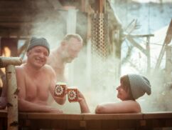 Genießen Sie die wohltuende Wärme bei einem Besuch in der Panoramasauna. Von hier oben haben Sie das Treiben im Mühlenhof im Blick. Oder wagen Sie den Sprung in die beheizten Badezuber. Regelmäßig lädt der Bademeister zum Bierbadetag. Den Tag können Sie bei ausgewählten Ritualen und Veranstaltungshighlights wie Reisevorträge, Konzerte oder Klangmeditationen, ausklingen lassen. In außergewöhnlichen Apartments und Hotelzimmern, in urigen Pensionen und Ferienwohnungen finden Sie erholsamen Schlaf. Am nächsten Morgen starten Sie zum Winter-Wandern mit einem reichhaltigen Bio-Langschläferfrühstück entspannt in einen neuen Tag.
