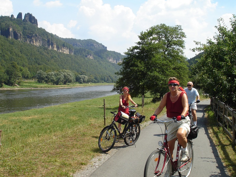 Der beste Einstiegs- und Genussparcours ist unser Elbe(rad)weg. Auf beiden Seiten des Flusses geht es ebenerdig durch die Sächsische und Böhmische Schweiz.