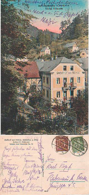 Schmilka - das Dorf der Elbschiffer, Flößer, Steinmetze, Köhler, Pechsieder und Waldarbeiter wurde 1582 erstmals erwähnt. Es gab zunächst nur 3 Häuser im „Schmilckengrundt“. Aufgrund der Enge im Felsengrund und der Abgelegenheit wuchs das kleine Dörfchen nur sehr langsam. Erst 1665 mit der Genehmigung des Kurfürsten zum Bau einer Mühle und der Genehmigung in ihr für den Verkauf zu backen und zu schenken, d. h. Mahlgäste (Einwohner, die Getreide zum Mahlen brachten), Schiffsleute und Reisende bewirten zu dürfen, machten das Leben etwas besser. Jedoch war das Geschäft nicht einträglich genug, so dass der Müller und Bäcker sich auch in den Steinbrüchen verdingen musste. Im Jahr 1800 erwarb Johann Gottfried Hänsel die Mühle für 1500 Taler und musste versprechen, die Witwe seines Vorgängers zu heiraten. Zum Glück profitierte er vom Strom der „Schweizreisenden“, die in dieser Zeit zunahmen. Auch Wilhelm Leberecht Götzinger (er verfasste die erste Reisebeschreibung der Sächsischen Schweiz) empfahl die Mühle aufgrund des „immer vorrätigen guten Bieres“, die freundliche Bewirtung und als Nachtquartier. Jedoch war die Mühle der Konkurrenz der Großmühlen und Dampfsägewerke nicht gewachsen und so lag seit 1881 die Müllerei und Bäckerei still. Die Gastwirtschaft mit ihrem Tanzsaal blieb jedoch erhalten und mit der Schaffung eines Eisenbahnhaltepunktes, sowie dem Bau einer Schiffsanlegestelle und dem Straßenausbau nach Postelwitz schaffte Schmilka den Anschluss an Bad Schandau und avancierte so zu einem beliebten Ausflugs- und Wanderziel der Sommerfrischler. Auch zu DDR-Zeiten war Schmilka ein beliebter Erholungsort für Arbeiter und FDGB’ler. Nach der Wende lag die Mühle brach, viele Häuser verfielen, die Einwohnerzahl ging zurück. Sven-Erik Hitzer jedoch erwarb nach und nach immer mehr Häuser Schmilkas, darunter auch die Mühle, die bereits 1823 von Ludwig Richter gezeichnet und auf einer Kupferplatte verewigt wurde. Diese Ansicht diente Sven-Erik Hitzer dazu, die Mühle 2007 zu rekonstruieren. 2011/2012 erfolgte ein großer Um- und Ausbau, so dass 2012 die Müllerei und Bäckerei ihren Betrieb aufnehmen konnten. Heute erstrahlt die Mühle mit ihrem Tanz- und Brausaal, dem Mühlenhof und der Bio-Bäckerei und Müllerei im alten Glanz und ist als Ausflugs- und Wanderziel äußerst beliebt. 2017 erhielt der Ort sogar die Auszeichnung als eines von „Sachsens schönsten Dörfern“.