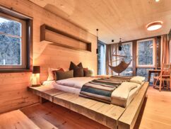 Das Appartement bietet großzügigen Komfort mit zwei Zimmern und gleich zwei Balkonen. Ein weiteres Highlight ist das außergewöhnlich gestaltete Badezimmer, das mit seinen Details ein echtes afrikanisches Lodge-Feeling aufkommen lässt.