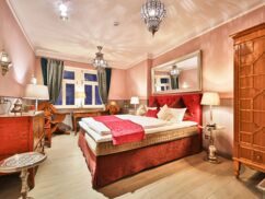 Dieses märchenhafte Erlebnis spiegelt sich im Zimmer „Ali Baba“ wider: Ein Ort, an dem Sie sich wie in einer Erzählung aus Tausend und einer Nacht fühlen können – auch wenn die 40 Räuber hier fehlen. Die Atmosphäre lädt zu einer Nacht voller Träume ein, inspiriert von fernen Kulturen und orientalischem Zauber.