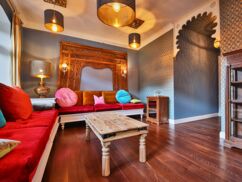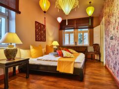 Tauche ein in die sinnliche Atmosphäre des fernen Ostens! Inspiriert von Reisen durch Indien, spiegelt dieses Appartement die lebendige Schönheit und den Zauber des Taj Mahal wider. Warme Farben wie die Gewürze Indiens, edle Messingaccessoires und der Duft von Seide und Exotik verleihen dem Raum ein authentisches Ambiente.
