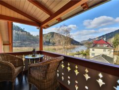 Das Appartement zeigt nach Westen und bietet mit zwei Zimmern und gleich zwei Balkonen einen perfekten Blick auf den Elb-Horizont. Für zusätzlichen Komfort sorgt der kostenlose Bademantel, den Sie für den Besuch im Badehaus Schmilka mit Panorama- und Bio-Sauna nutzen können.