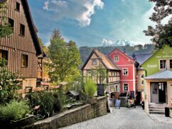 Die Villa Waldfrieden befindet sich direkt an der Elbe, etwa acht Gehminuten vom historischen Ortskern des im Herzen des Nationalparks Sächsisch-Böhmische Schweiz gelegenen Dorfes Schmilka, entfernt. Umgeben von Wäldern und Felsmassiven des Elbsandsteingebirges, drängen sich hier kleine Fachwerkhäuschen den Berg hinauf zur historischen Mühle, am Ufer der Elbe reihen sich Hotels und Pensionen. Es wundert nicht, dass dieser Ort mit dem Prädikat „Schönstes Dorf Sachsens“ bedacht wurde. Dieses Kleinod zwischen Dorfkultur und Natur muss man einfach erlebt haben.