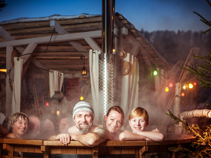 Genießen Sie die wohltuende Wärme bei einem Besuch in der Panoramasauna. Von hier oben haben Sie das Treiben im Mühlenhof im Blick. Oder wagen Sie den Sprung in die beheizten Badezuber. Regelmäßig lädt der Bademeister zum Bierbadetag. Den Tag können Sie bei ausgewählten Ritualen und Veranstaltungshighlights wie Reisevorträge, Konzerte oder Klangmeditationen, ausklingen lassen. In außergewöhnlichen Apartments und Hotelzimmern, in urigen Pensionen und Ferienwohnungen finden Sie erholsamen Schlaf. Am nächsten Morgen starten Sie zum Winter-Wandern mit einem reichhaltigen Bio-Langschläferfrühstück entspannt in einen neuen Tag.